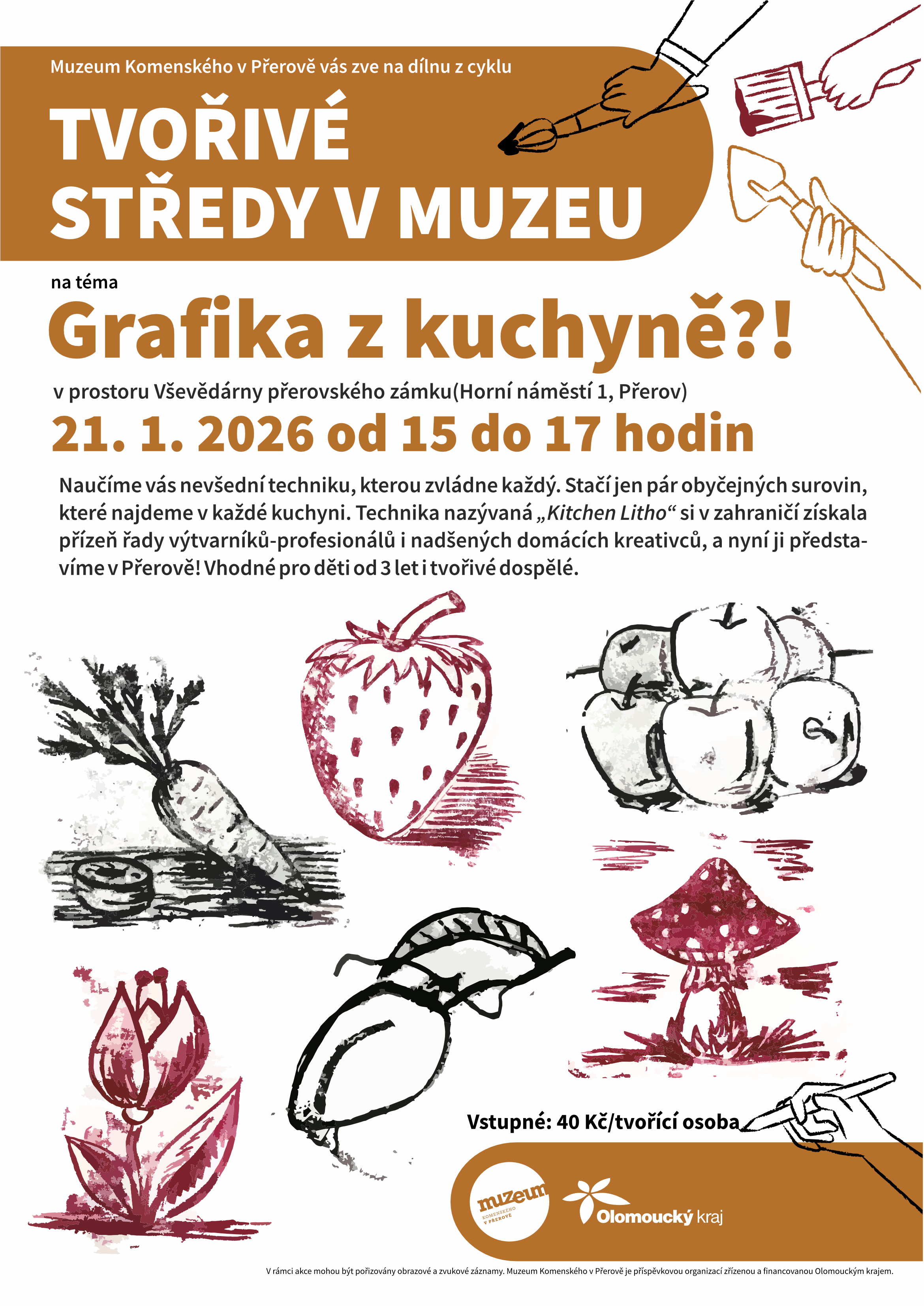 Dílna se uskuteční ve Vševědárně přerovského zámku ve středu 21. ledna 2026 od 15.00 do 17.00 hodin (poslední vstup možný v 16.30). Vstupné: 40 Kč/tvořící osoba.