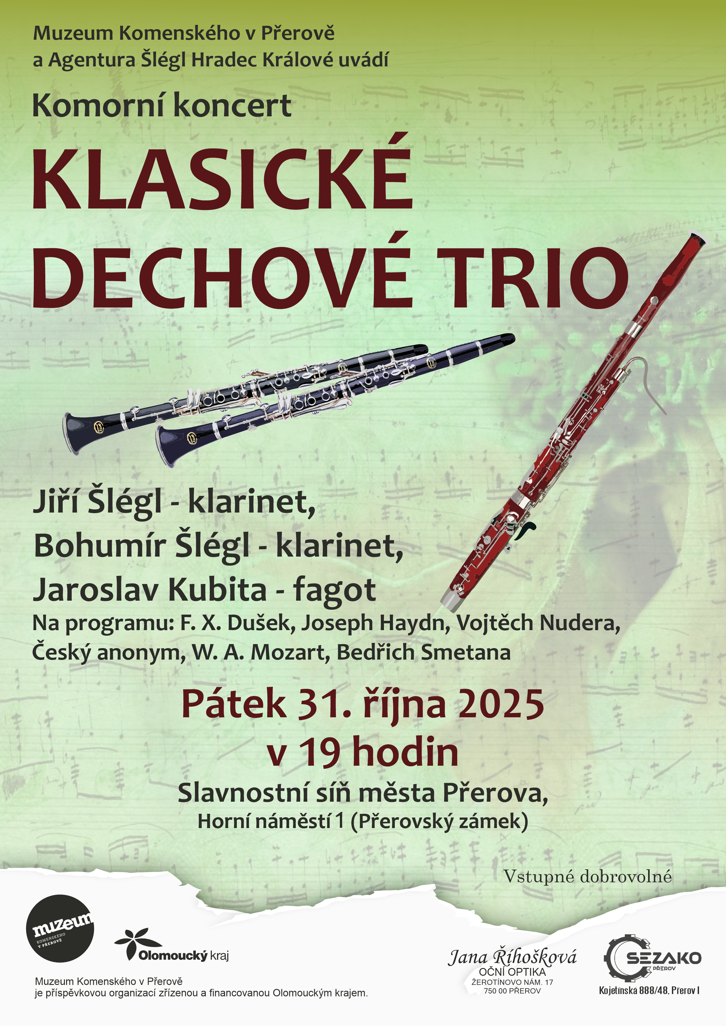 Koncert komorní hudby v podání Klasického dechového tria se uskuteční v pátek 31. října od 19.00 hodin ve Slavnostní síni města Přerov.