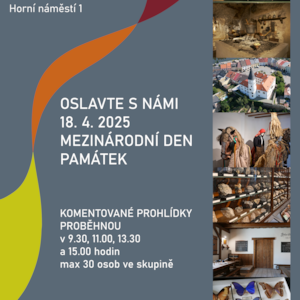 srdečně vás zveme na komentované prohlídky stálých expozic, které proběhnou v pátek 18. dubna 2025 u příležitosti Mezinárodního dne památek a historických sídel.