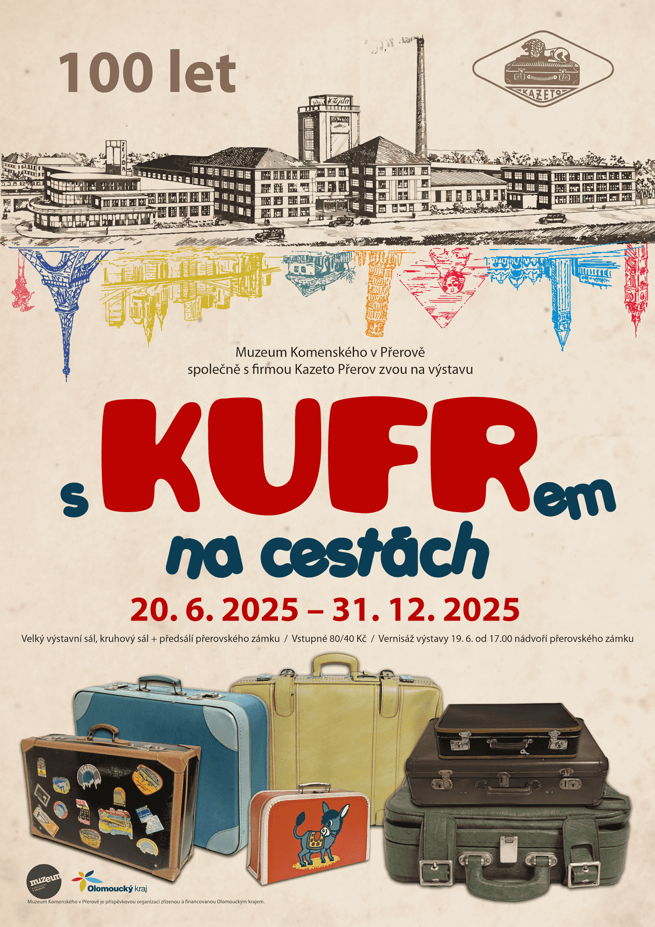 Návštěvníci se na přednášce v úterý 7. října od 17.00 hodin dozví víc o historii přerovského podniku KAZETO, osobnosti Karla Zejdy, typologii kufrů i širších souvislostech cestování. Prohlídkou vás provede kurátor výstavy Mgr. Petr Sehnálek. Vstupné v rámci výstavy 80/40 Kč.