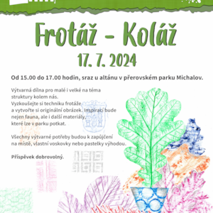Výtvarná dílna na téma "FROTÁŽ – KOLÁŽ" se při této příležitosti uskuteční přímo v Michalově, a to ve středu 17. 7. 2024 od 15.00 do 17.00 hodin. Sraz účastníků u altánu v centrální části Michalova.