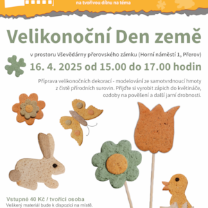 Přijďte s dětmi oslavit Velikonoce kreativně a udržitelně! Zveme vás na výtvarnou dílnu, kde si společně vyrobíme originální velikonoční dekorace z recyklovaných a netradičních materiálů. Není třeba si nosit cokoliv s sebou, všechen materiál bude připraven na místě.